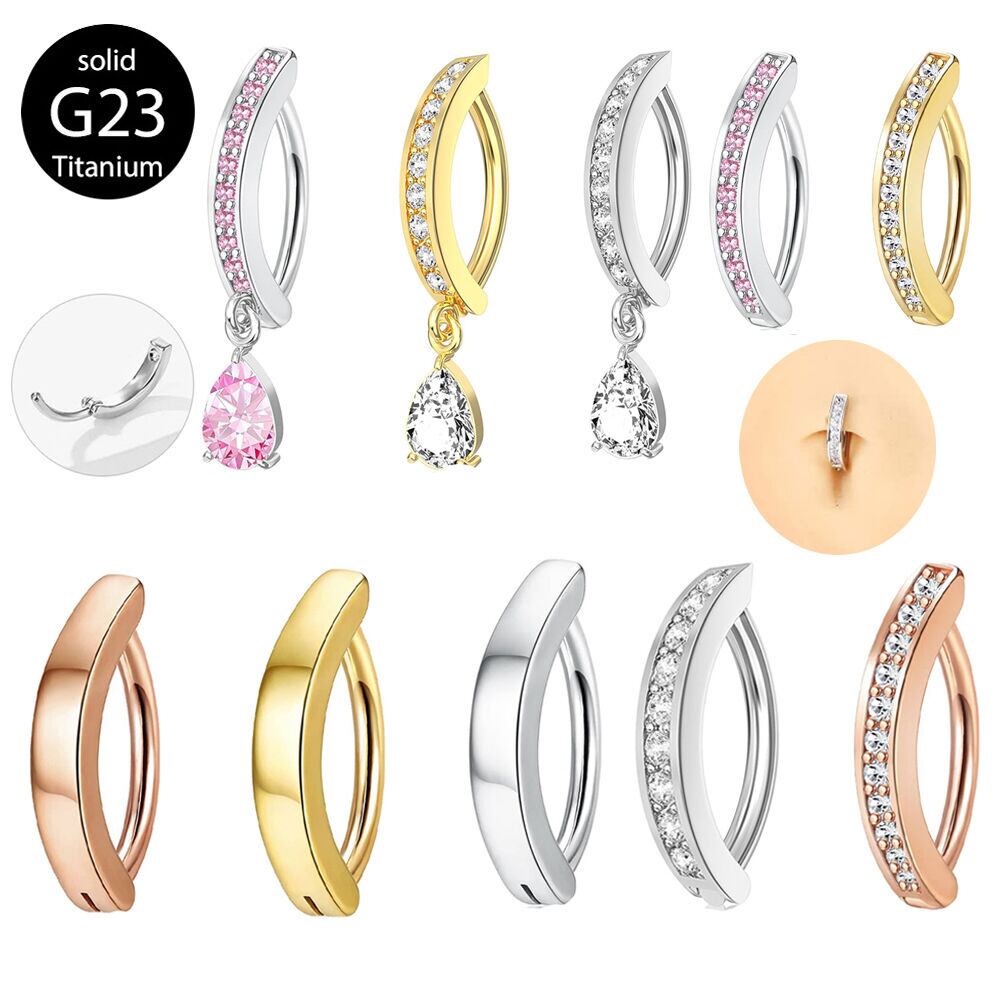 【送料無料】へそピ へそ出し 1個 14G インプラントグレードG23チタン製へそピアス クリック式 ステンレス鋼/真鍮製 ネイブルピアス ジュエリー ベリーピアス
